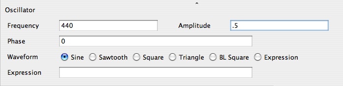 | Computer Music: Musc 216 The amplitude of the output of your patch is determined by a parameter in the Oscillator operator. Using the simple patch you created in the 1st tutorial (Creating a Simple JSYD Patch):