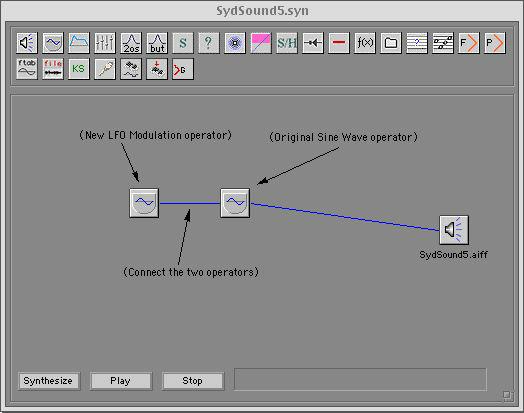Computer Music: Musc 216 LFO Modulation of Amplitude LFO is an abbreviation for "low frequency oscillator." Modulation refers to the way one signal is changed systematically by another signal. Consequently, LFO modulation refers to the process by which an oscillator using a low frequency (usually below the threshold of human hearing, 1 - 20 Hz) can systematically change the state of another oscillator, for example, its amplitude. Using the simple patch you created in the 1st tutorial (Creating a Simple SYD Patch), the following tutorial will show you how to add another operator which will modulate the output amplitude. Systematic modulation of the amplitude is also referred to as, TREMOLO. Do this: