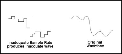 the original sound's smooth, continuous waveform shape. As the sampling